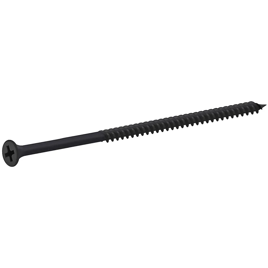 Les 200 vis pour plaque de plâtre phosphatées noires de ce pack sont fabriquées à partir d’acier au carbone. Elles mesurent 100 mm de long, ont un diamètre de 4,8 mm et sont partiellement filetées sur 98 mm. Ce pack est idéal pour tout un éventail de projets de bricolage.
