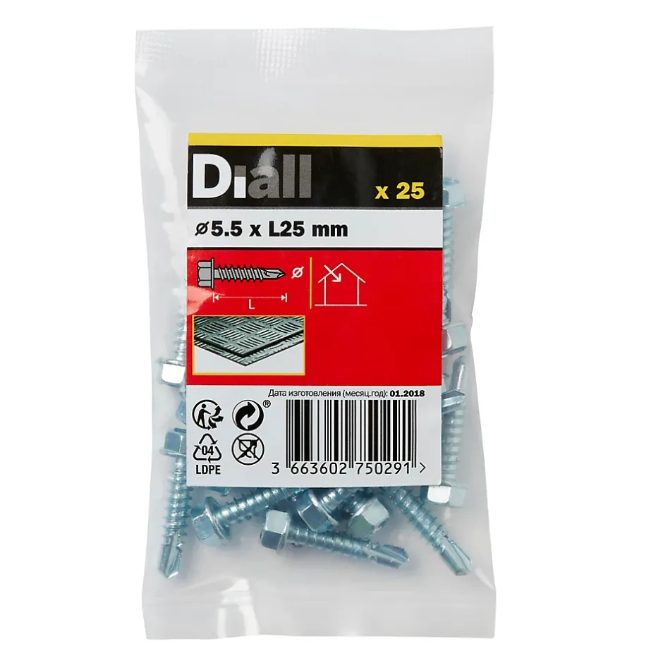 Vis métal auto-perceuses. Longueur du produit : 25 mm. Diamètre du produit : 5,5 mm. Type de filetage : Auto-perçant. Type embout : Pointe trempée.