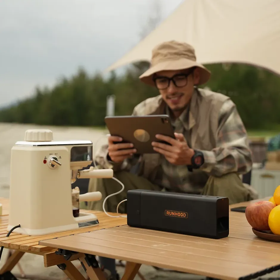 RUNHOOD Weekend Digital – Kit Énergie Nomade 648 Wh / 80 W ACLe Kit Weekend Digital RUNHOOD est conçu pour les aventuriers connectés, les télétravailleurs mobiles et les passionnés de voyages. Il combine 2 batteries EB324 (648 Wh) avec deux modules essentiels : le UE256 pour la connectique USB (PD/QC) et le AE80 pour une sortie AC 80 W pure sinus. Capacité : 648 Wh (2 × EB324 de 324 Wh) Sorties : UE256 : 4 × ports USB (USB-C PD, USB-A QC 3.0) AE80 : sortie secteur AC 80 W (pure sinus) Recharge flexible : via secteur (180 W), allume-cigare (120 W), ou solaire (avec adaptateur) Technologie Hot-Swap : remplacement à chaud des batteries EB324 sans interruption d’alimentation Format compact & léger : idéal pour les week-ends, road trips et déplacements professionnelsUtilisations idéales : Recharger ordinateurs portables, smartphones, tablettes, routeurs Utiliser des petits appareils AC ( Alimentation mobile pour télétravail ou loisirs numériques en extérieurLe kit RUNHOOD Weekend Digital, c’est l’autonomie sans compromis pour les nomades du quotidien.