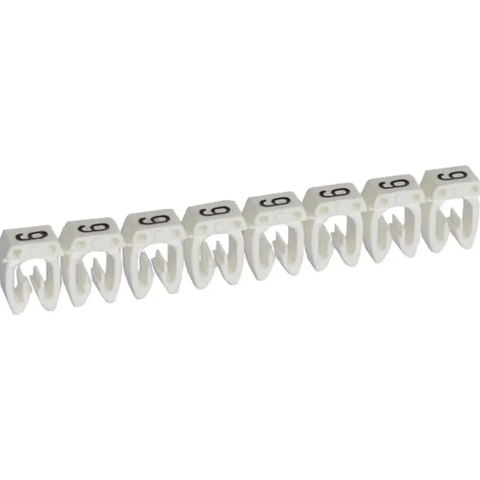 Bagues de repérage pour fil – Marqué Chiffre 9 – Couleur Blanc Ces Repères de câbles sont fabriqués en France par Legrand, ils sont issus de la gamme CAB3. Ils sont très utilisés par les professionnels, les fabricants de machines spéciales et les tableautiers. Ces repères Legrand 038219 respectent les codes couleurs internationaux.Ces repères marqués du Chiffre 9 en couleur Blanc se clipsent sur des fils électriques de section 0,5 à 1,5mm² mais ils sont également compatibles avec les blocs de jonction Viking3 Legrand (3 repères maximum par bornes viking).Si vous avez besoin d’associer plusieurs repères sur un même fils, les marquages resteront parfaitement alignés grâce à un système de picots très pratique.Ces repères de filerie sont conditionnés par boite de 1200 repères en réglettes de 30 repères.L’essentiel des repères de filerie Legrand 038219 Chiffre 9 Couleur noir (code couleur international)Compatible avec fils de section 0,5 à 1,5mm² Compatible avec bornier Viking3 (3 repères maximum par bornes)Alignement parfait des repères grâce aux picotsBoite de 1200 repèresFabrication française