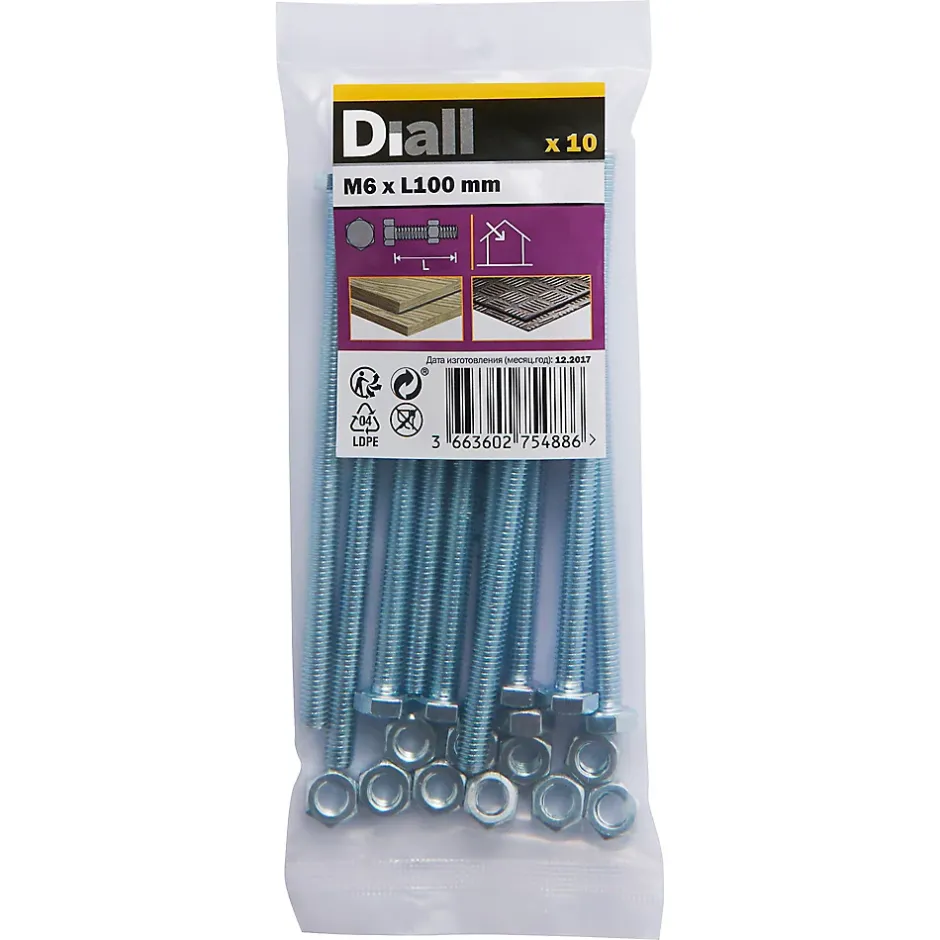 Les 10 boulons et écrous hexagonaux zingués de ce pack sont fabriqués à partir d’acier au carbone. Ils mesurent 100 mm de long et ont un diamètre M6. Ils sont idéaux pour tout un éventail de projets de bricolage.