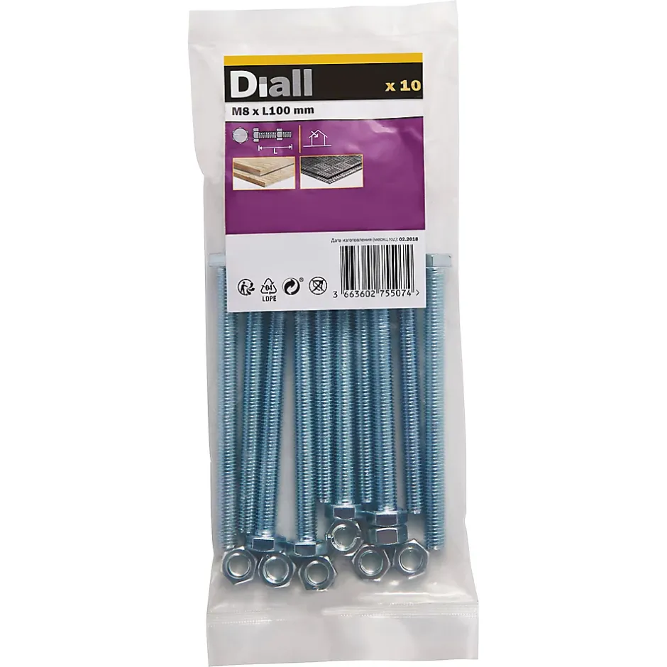 Les 10 boulons et écrous hexagonaux zingués de ce pack sont fabriqués à partir d’acier au carbone. Ils mesurent 100 mm de long et ont un diamètre M8. Ils sont idéaux pour tout un éventail de projets de bricolage.