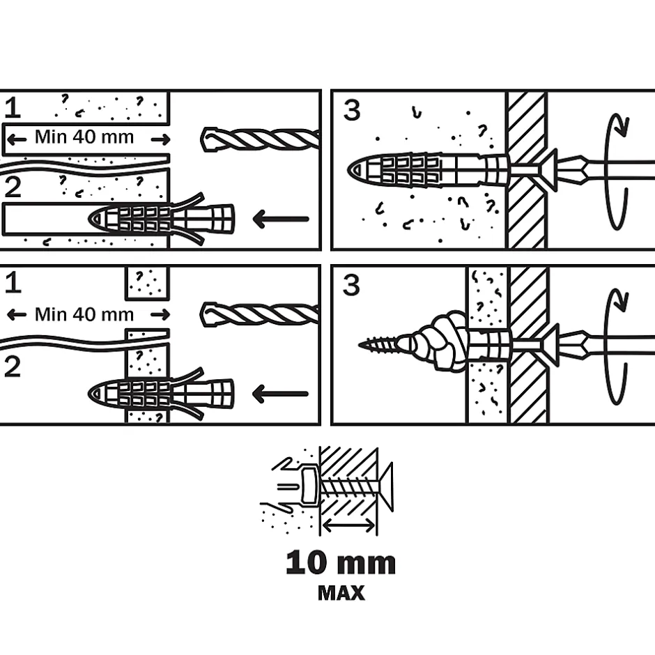 - Les chevilles anti-rotation facilitent l’adhérence dans de nombreux supports
