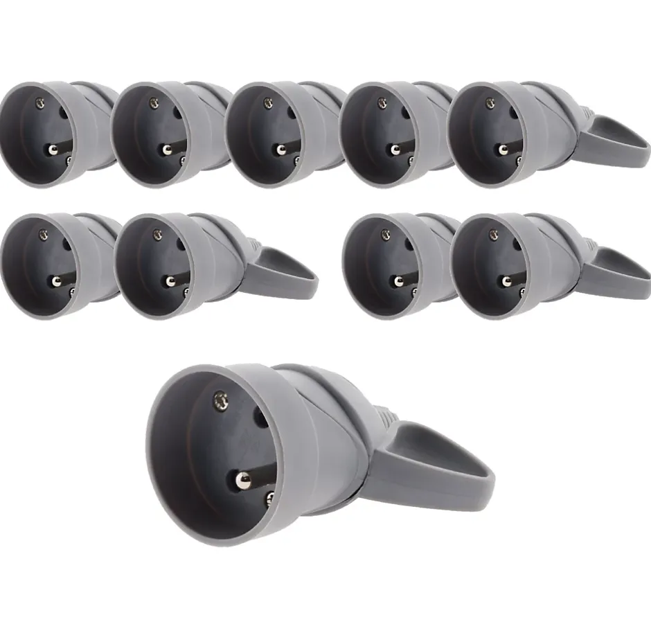 Fiche électrique femelle à anneau 2P+T 16A. Couleur(s) : noir, gris ou blanc. Câble électrique HO5VV-F 3G1/3G1,5mm². Puissance 3680W max sous 230V. Avec poignée pour une prise en main ergonomique. Norme(s) : NF.