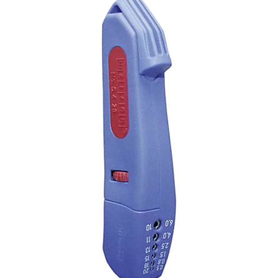 Couteau à dénuder polyvalent et robuste, conçu pour des opérations précises sur câbles ronds de 4 à 28 mm. Sa molette permet d’ajuster en continu la profondeur de coupe pour protéger le conducteur, tandis que la lame auto-pivotante bascule entre coupe circulaire et longitudinale. Construction en fibre de verre synthétique pour une bonne résistance, format compact (145 mm, 61 g) et compatibilité avec sections 0,5–6 mm², idéal pour électriciens et techniciens.