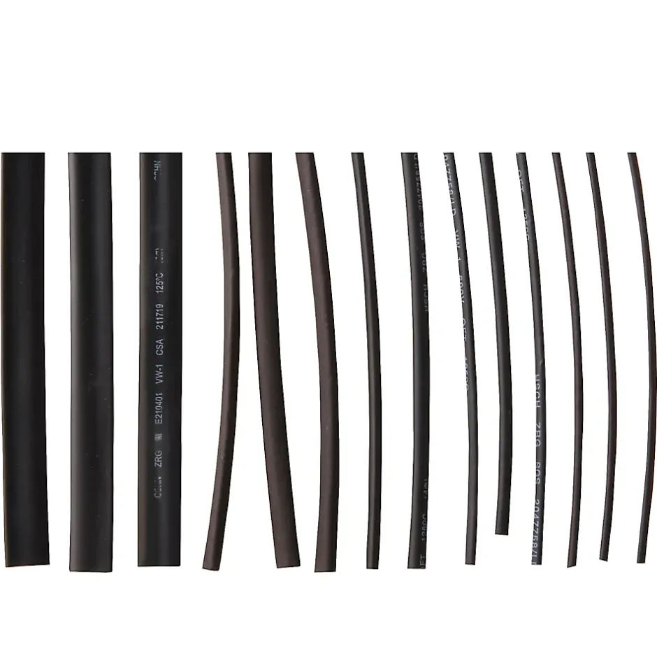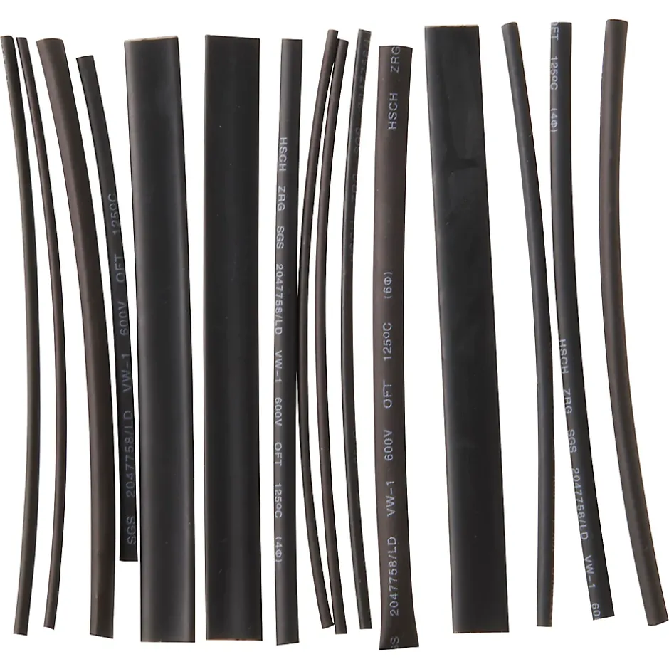 Lot de 15 gaines thermorétractable noires ø8/ø6/ø4/ø3/ø2 mm.
