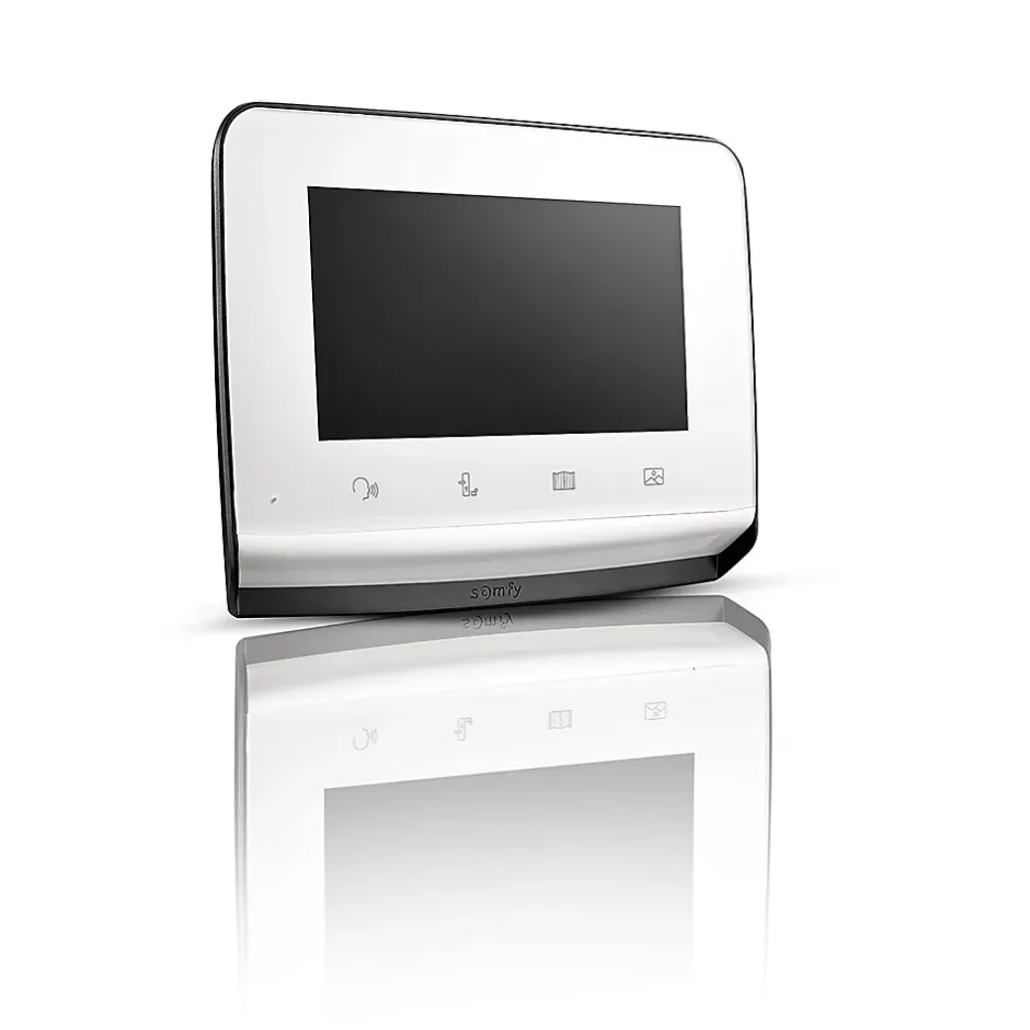 - Le moniteur bénéficie d’un grand écran couleur 7 pouces et d’un point de commande radio intégré pour contrôler 5 produits sans-fil Somfy RTS (volets roulants, éclairage, porte de garage, etc.).