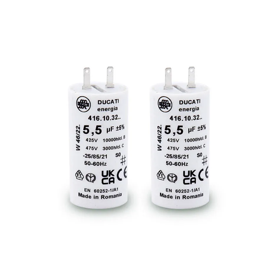 Le condensateur 5,5 µF est une solution économique et efficace pour le changement de condensateur des moteurs de volets roulants. Ce condensateur de démarrage de haute qualité est adapté aux différents types de moteurs et marques, y compris SIMU et SOMFY, et offre une installation facile et une compatibilité étendue avec de nombreux systèmes de motorisation.Caractéristiques principales :- Réparation économique : Évitez de remplacer tout le moteur grâce à ce condensateur compatible pour les moteurs de volets roulants de différentes marques et types de moteurs- Qualité supérieure : Ce condensateur d’origine est de classe B, offrant une durée de vie minimale de 10 000 heures pour un fonctionnement fiable et durable- Compatibilité étendue : Le condensateur est compatible avec une large gamme de couples moteurs et de marques, notamment SIMU, SOMFY et d’autres fabricants de moteurs de volets roulants- Installation simple : Remplacement rapide et facile du condensateur en suivant des étapes simples et sécuritaires, évitant ainsi les courts-circuits et autres problèmes électriques- Adapté à divers systèmes de motorisation : Compatible avec les moteurs filaires et radio type RTS ou IO- Dimensions : Longueur de 57 mm sans les cosses et 67 mm cosses comprises, pour un diamètre de tube de 30 mmAttention : Vous pouvez recevoir un condensateur de marque Meco ou Ducati. Cela n’altère en rien sa qualité.