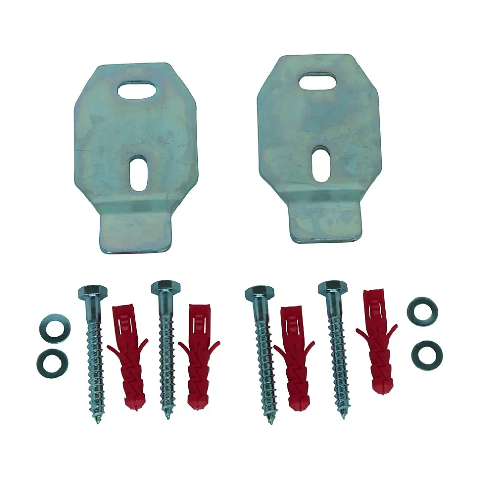 Kit de fixation support lavabo sur un mur plein (parpaing, brique, .) contenant 2 pattes supports, vis et chevilles de fixation.