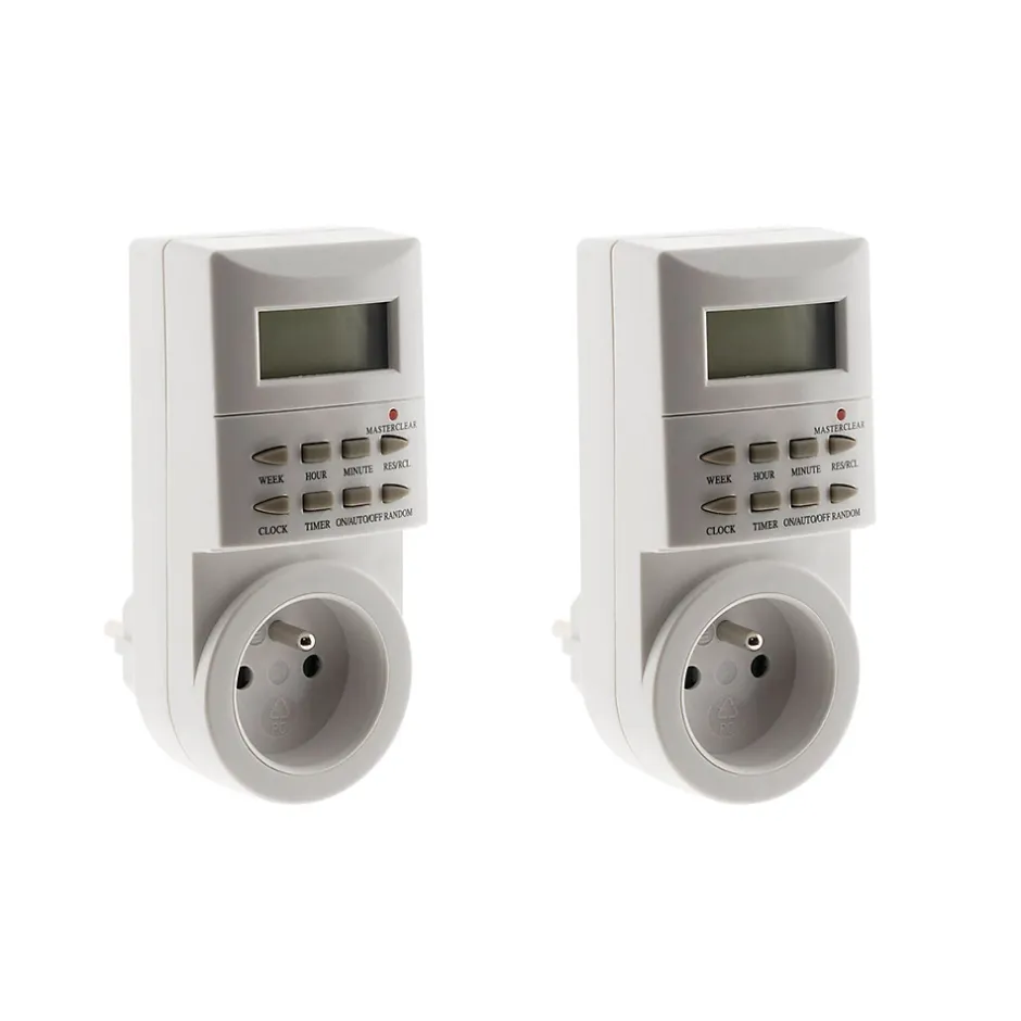 Caractéristiques du programmateur hebdomadaire digital – Otio :Modèle : programmateur heddomadaire digital49 programmes simples disponibles pour tous types d’appareils électriques1 à 8 cycles marche/arrêt hebdomadaires personnalisablesPuissance maximale : 3680W sous 230VFonction déclenchement aléatoire pour plus de sécurité et d’efficacitéProgrammation à la minute près pour une précision optimale 16 options différentes de déclenchement des cyclesÉcran digital clair et facile à utiliserCompatible avec la plupart des appareils électriques domestiquesDesign compact et ergonomiqueLe programmateur hebdomadaire digital offre une flexibilité exceptionnelle grâce à ses 49 programmes simples et ses 16 options de déclenchement, permettant une gestion précise de vos appareils électriques !Sa programmation à la minute près garantit un contrôle optimal, tandis que la fonction de déclenchement aléatoire augmente la sécurité en simulant une présence. Facile à utiliser et compatible avec une grande variété d’appareils, il est idéal pour réduire votre consommation énergétique et automatiser votre quotidien.
