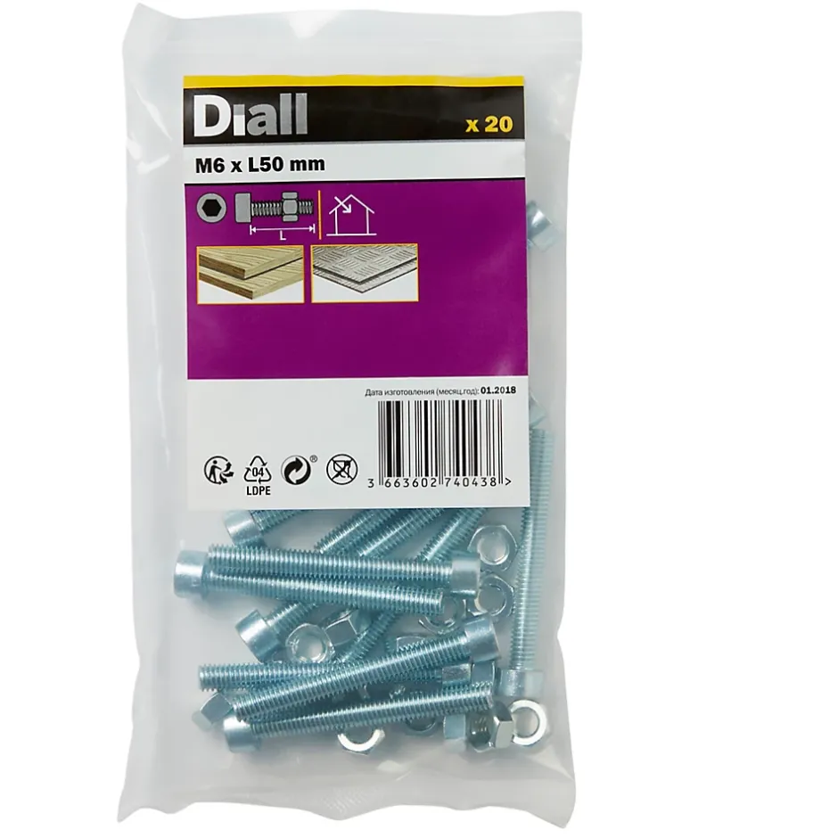 Les 20 boulons et écrous cylindriques zingués de ce pack sont fabriqués à partir d’acier au carbone. Ils mesurent 50 mm de long et ont un diamètre M6. Ils sont idéaux pour tout un éventail de projets de bricolage.