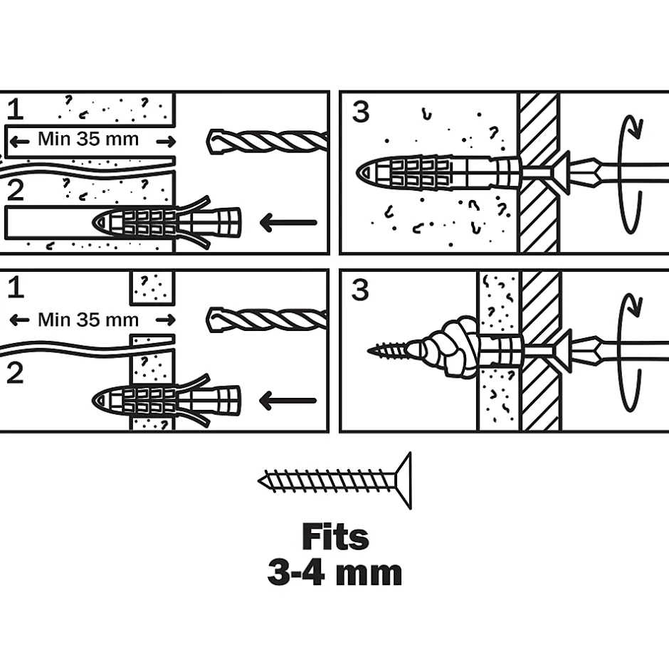 - Cheville universelle avec vis pour tout type de supports