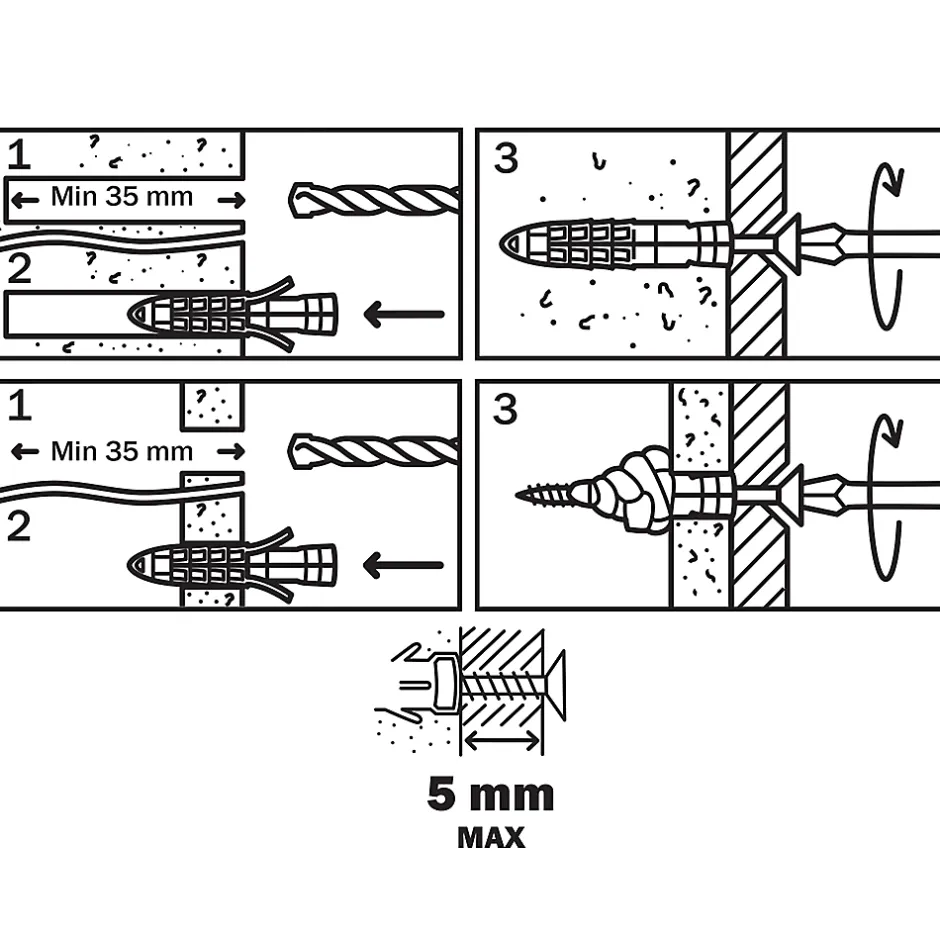 - Les chevilles anti-rotation facilitent l’adhérence dans de nombreux supports
