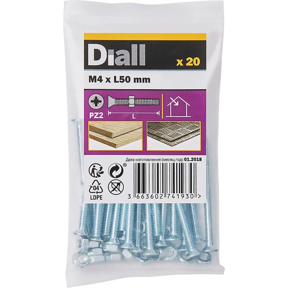 Les 20 boulons et écrous fraisés zingués de ce pack sont fabriqués à partir d’acier au carbone. Ils mesurent 50 mm de long et ont un diamètre M4. Ils sont idéaux pour tout un éventail de projets de bricolage.