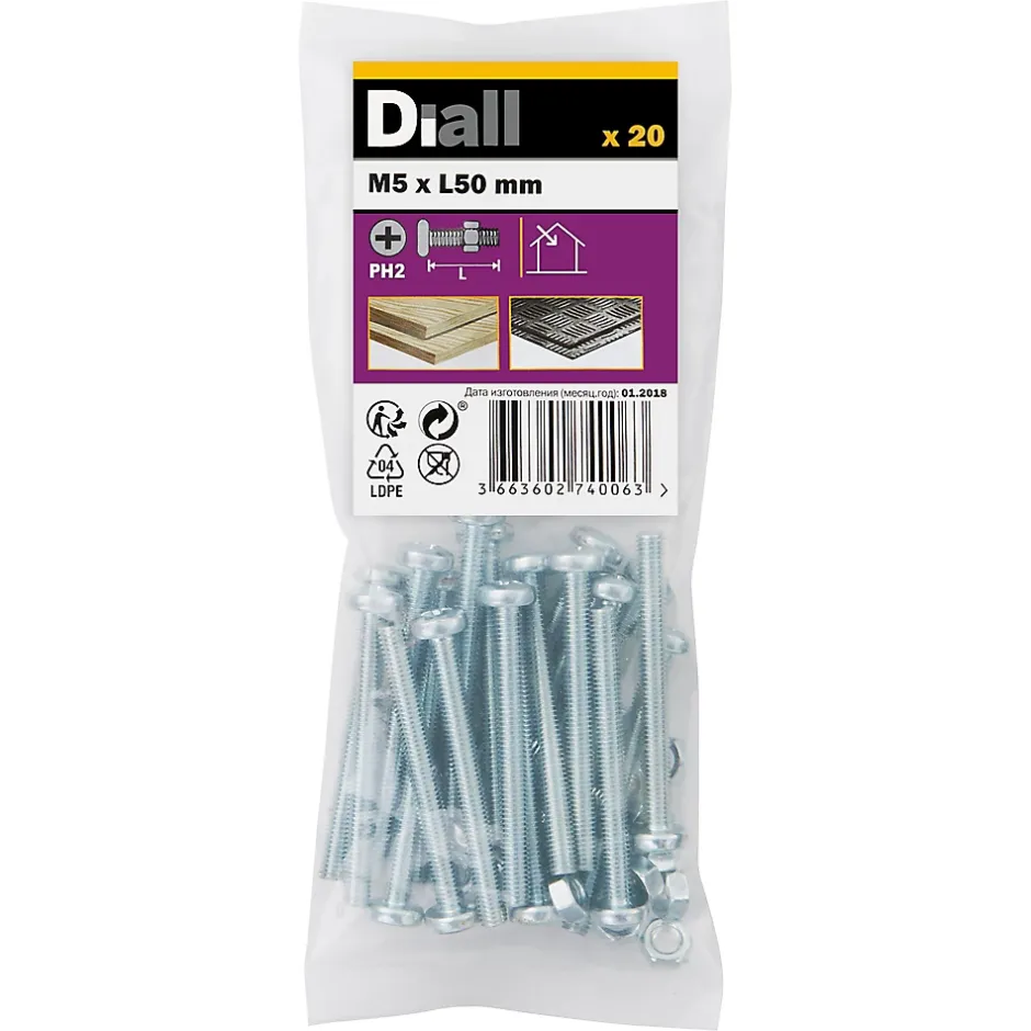 Les 20 écrous et boulons à tête cylindrique zingués de ce pack sont fabriqués à partir d’acier au carbone. Ils mesurent 50 mm de long et ont un diamètre M5. Ils sont idéaux pour tout un éventail de projets de bricolage.
