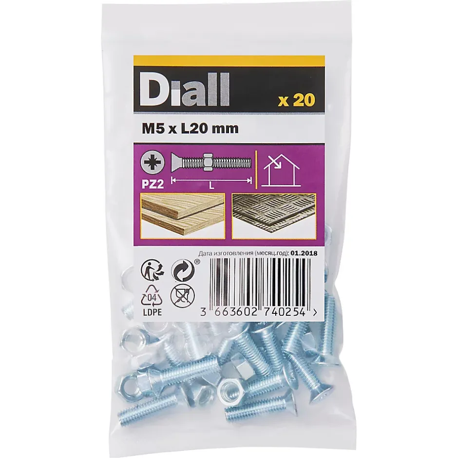 Les 20 boulons et écrous fraisés zingués de ce pack sont fabriqués à partir d’acier au carbone. Ils mesurent 20 mm de long et ont un diamètre M5. Ils sont idéaux pour tout un éventail de projets de bricolage.