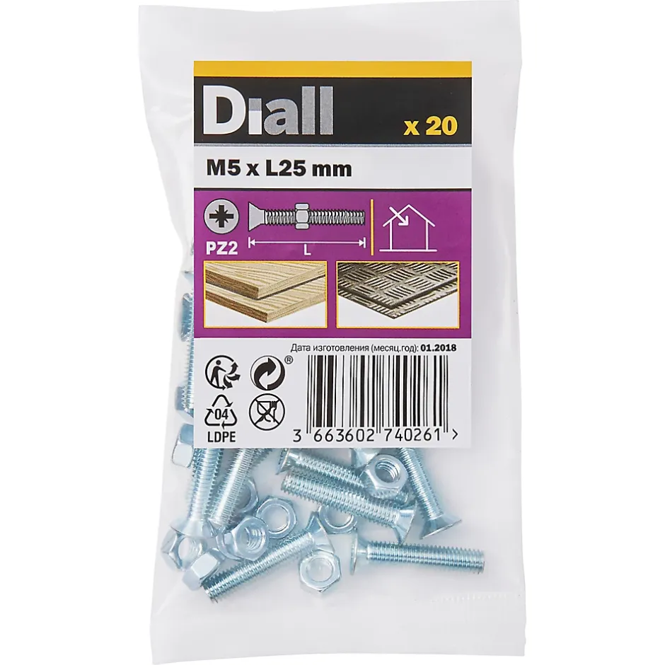 Les 20 boulons et écrous fraisés zingués de ce pack sont fabriqués à partir d’acier au carbone. Ils mesurent 25 mm de long et ont un diamètre M5. Ils sont idéaux pour tout un éventail de projets de bricolage.