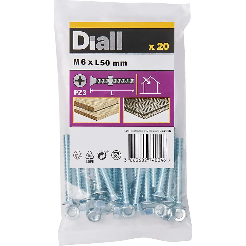 Les 20 boulons et écrous fraisés zingués de ce pack sont fabriqués à partir d’acier au carbone. Ils mesurent 50 mm de long et ont un diamètre M6. Ils sont idéaux pour tout un éventail de projets de bricolage.
