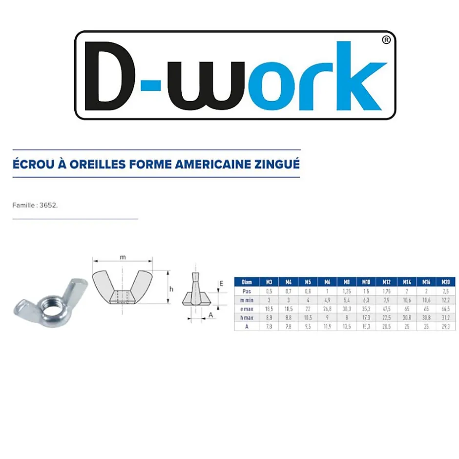 Présentation du produit : Découvrez notre lot de 200 écrous à oreille M6 en finition zinguée blanche. Conçus pour offrir une fixation sécurisée, ces écrous sont idéaux pour divers projets de bricolage et de construction. Caractéristiques principales : : Type : Écrous à Oreille Dimensions : M6 Finition : Zingué Blanc Quantité : 200 pièces Avantages : : Ces écrous à oreille sont conçus pour une utilisation facile et rapide, offrant une excellente résistance à la corrosion grâce à leur finition zinguée. Ils sont parfaits pour des applications variées, que ce soit dans le domaine du bâtiment ou pour des projets de bricolage. Utilisation : : Pour utiliser ces écrous, il suffit de les visser sur une tige filetée M6. Ils sont compatibles avec de nombreux types de boulons et de vis, ce qui les rend très polyvalents. Précautions d’utilisation : : Assurez-vous de ne pas dépasser le couple de serrage recommandé pour éviter d’endommager l’écrou ou la tige filetée. Entretien et nettoyage : : Pour maintenir vos écrous en bon état, il est conseillé de les nettoyer régulièrement et de les stocker dans un endroit sec.