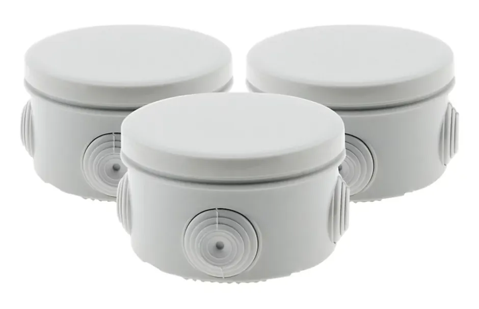 Caractéristiques du lot de 3 boîtes de dérivation rondes IP55 Ø80mm – Zenitech :Modèle : lot de 3 boîtes étanchesAvec couvercle 1/4 de tourIndice de protection : IP55Diamètre : Ø80mmProfondeur 40mmLe lot de 3 boîtes étanches est idéal pour protéger vos installations électriques dans des environnements nécessitant une haute résistance à l’eau et à la poussière.Avec un indice de protection IP55, ces boîtes garantissent une protection efficace contre les intempéries, ce qui les rend parfaites pour une utilisation extérieure ou dans des zones exposées. Elles sont équipées d’un couvercle à 1/4 de tour, permettant une ouverture et fermeture faciles, tout en assurant une fermeture sécurisée.Leur diamètre de Ø80mm et leur profondeur de 40mm offrent une capacité suffisante pour les câblages tout en restant discrètes dans l’installation. Ce lot est une solution pratique et fiable pour vos projets électriques, que ce soit pour des rénovations ou des installations neuves.