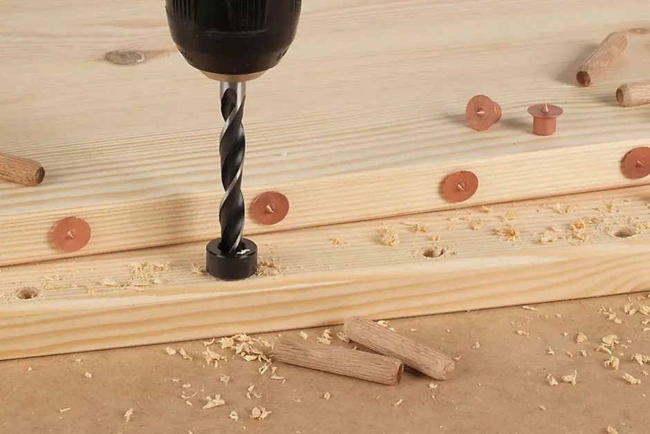 - pour le perçage limité en profondeur, p. ex. lors de l’assemblage de tourillons en bois