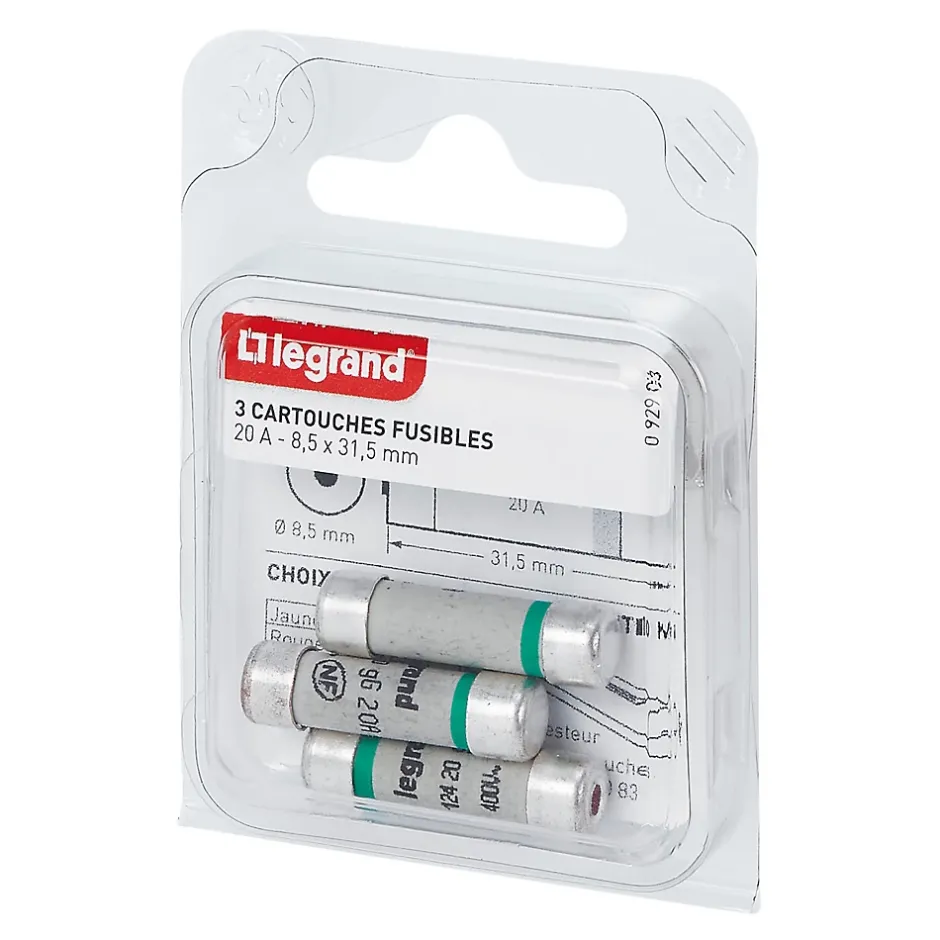 3 fusibles céramique Legrand 8.5 x 31.5 mm avec voyant