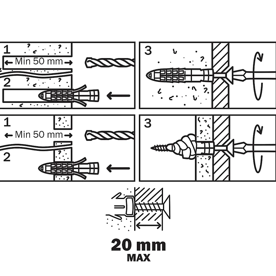 - Les chevilles anti-rotation facilitent l’adhérence dans de nombreux supports