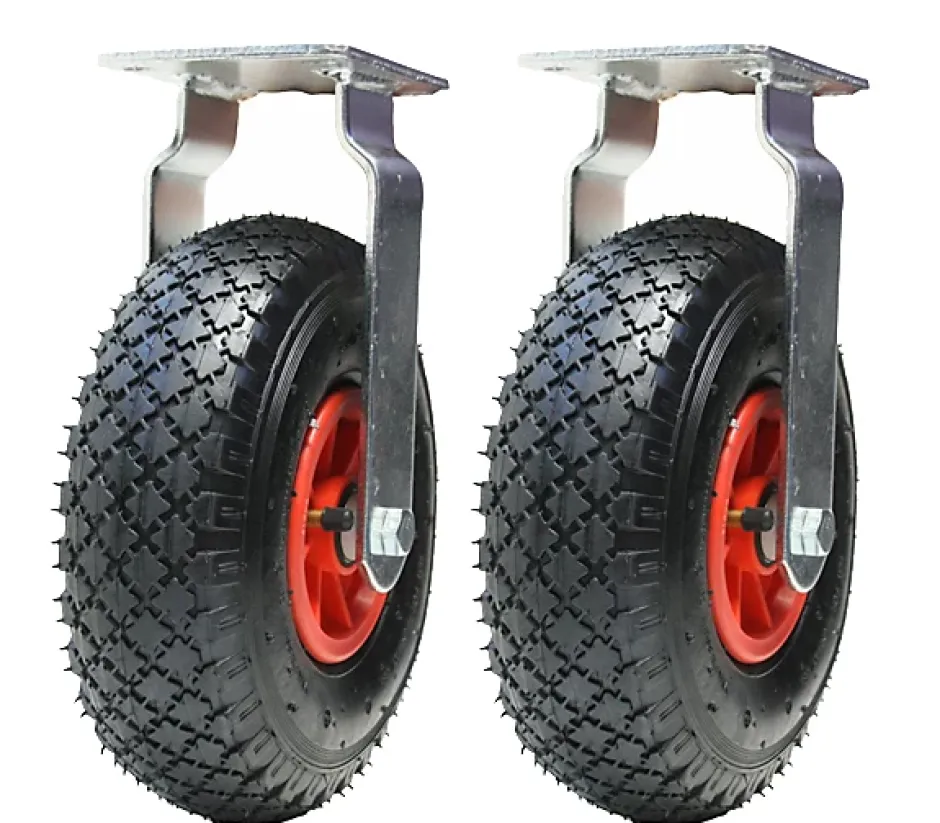 A vendre 2 roulettes fixes pneumatiquesroues centrales en plastique,supports à position fixecapacité de charge de 150 kg chacune.Très utile lorsque des charges délicates doivent être protégées ou lorsqu’une roue plus large est nécessaire, par exemple lors de déplacements sur des terrains de sport.ou lorsqu’une roue plus large est nécessaire, par exemple lors de déplacements sur des terrains de jeu.Les dimensions de l’article sont les suivantes :Roue pneumatique 260x85mm,Taille de la plaque : 135x110mm,Centre des trous : 105x80mm,Taille du trou de boulon : 10 mm,Hauteur totale : 320 mm