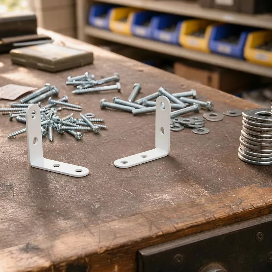 Lot de 4 équerres de chaise en acier blanc, l. 14 x H. 25 x P. 25 mm.