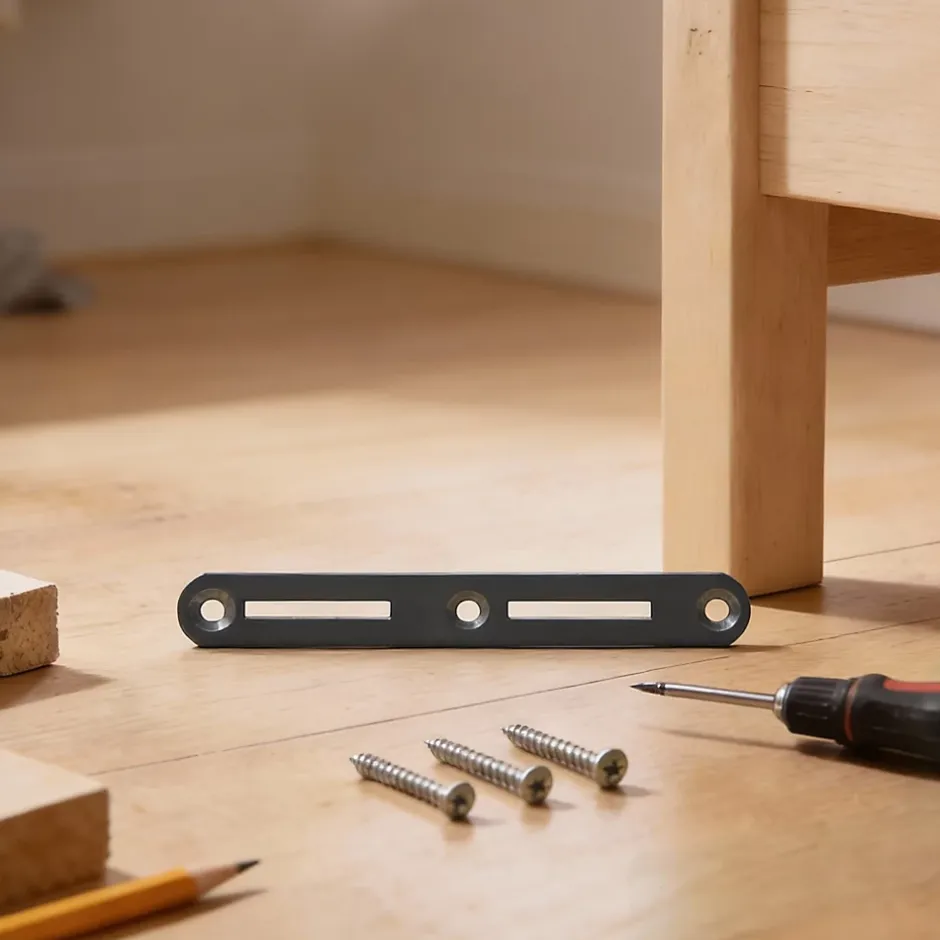 Lot de 4 ferrures de lit en acier zingué, 90 x 18 mm.