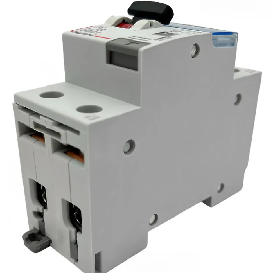 Disjoncteur différentiel Legrand 411002 – 1P+N 16A 30mA avec arrivée à borne à visCe disjoncteur différentiel 30mA de calibre 16A est équipé de bornes de connexion à vis, un système de raccordement éprouvé et conforme aux normes de sécurité en vigueur.De plus, il est auxiliarisable, ce qui signifie qu’il peut être associé à des auxiliaires tels que des bobines MX ou autres. C’est un disjoncteur différentiel avec neutre à droite.Ce disjoncteur différentiel fabriqué par Legrand est clipsable sur le rail DIN de votre tableau électrique. Il est raccordé via un système de connexion à vis.Ce disjoncteur diff de sensibilité 30mA assure un pouvoir de coupure de 6kA.Le différentiel 411002 occupe 2 modules de 18mm sur votre coffret électrique.Ce disjoncteur différentiel Legrand est de Type AC, il est est conçu pour la protection des circuits standards.Les points essentiels du Disjoncteur différentiel Legrand 411002 :Polarité : 1P+NCourbe : Courbe CClasse : Type ACAuxiliarisable : OuiPouvoir de coupure : 10kAProtection différentielle de Sensibilité 30mA (protection des personnes)Calibre : 16A