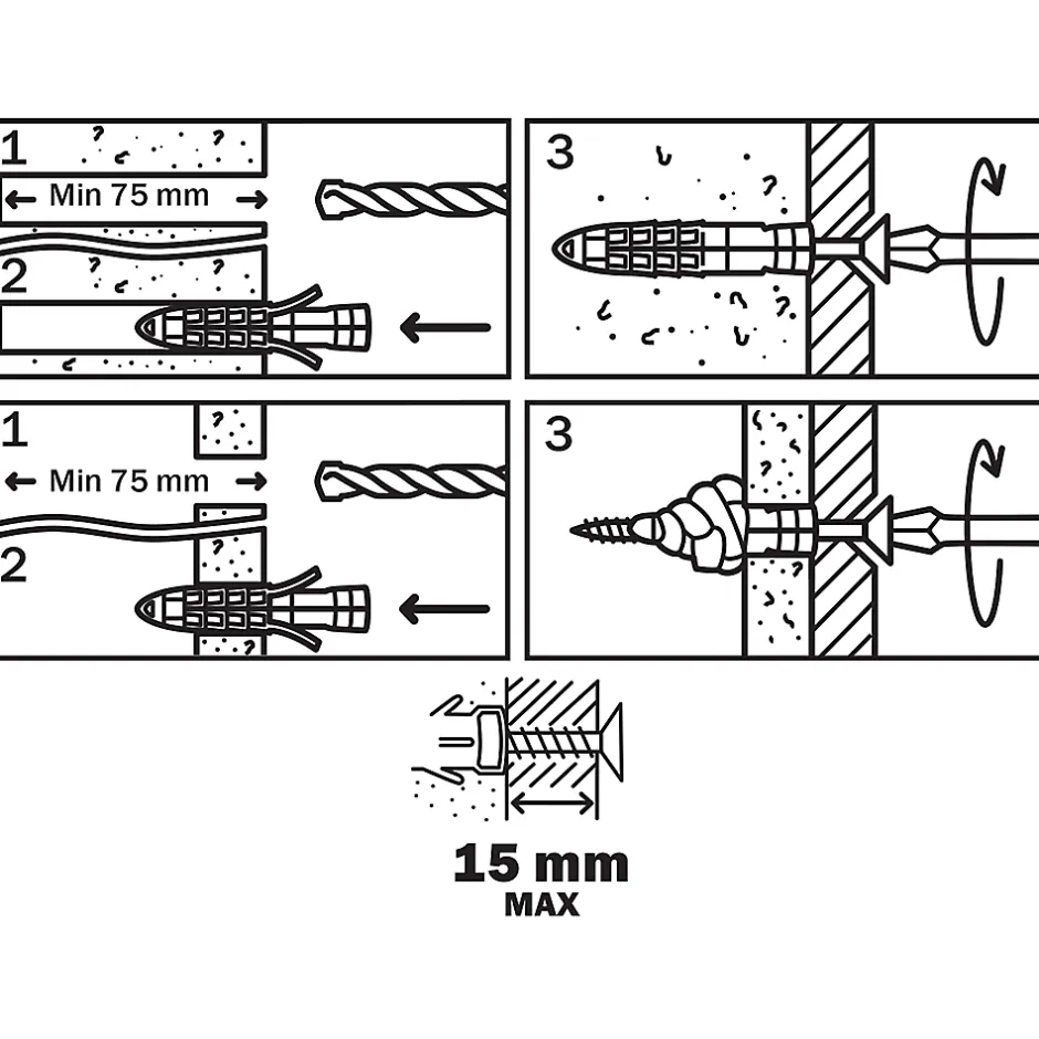 - Les chevilles anti-rotation facilitent l’adhérence dans de nombreux supports