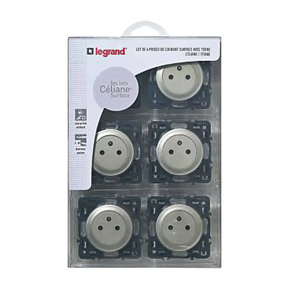 6 mécanismes 2 P+T Legrand Céliane titane