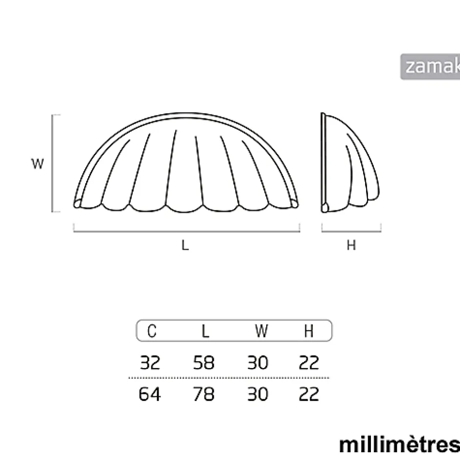 Vous pourrez facilement monter cette poignées de meuble coquille en laiton vieilli pour porte cuisine – entraxe 64MM sur la porte ou le tiroir de votre meuble grâce à ses vis M4 découpables qui serviront à différentes épaisseurs de porte. A l’achat de ce pack nous vous enverrons 6 poignées et les vis nécessaires au montage. Cette poignée a été conçue pour les meubles, tiroirs et armoires de style Classique. Le matériau de fabrication de cette poignée est Zamak.
