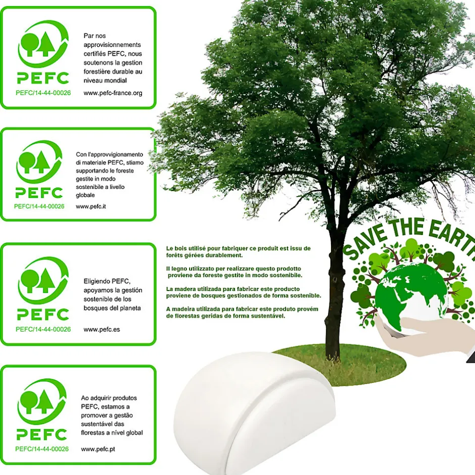 Ce butée de porte adhésive en bois laqué blanc 47x38mm peut être monté sur tous types de sols tels que le parquet, le grès cérame, la céramique, le marbre, le vinyle, le stratifié et le béton taloché grâce à son super adhésif à haute adhérence. Pour l’installer, vous devez d’abord retirer les particules adhérées au sol et le nettoyer soigneusement en frottant avec un chiffon imbibé d’alcool. Produit fabriqué en Espagne avec du bois massif. Le logo PEFC présent sur nos produits garantit que notre bois est issu de forêts gérées durablement, de sources recyclées et contrôlées. En choisissant le bois PEFC, nous soutenons la gestion durable des forêts de la planète. Les produits identifiés par les marques PEFC peuvent être fournis comme certifiés PEFC. Sa finition vernis/peinture est conforme à la réglementation européenne REACH. À l’achat de ce pack nous vous enverrons 8 unités de ce butoir de porte