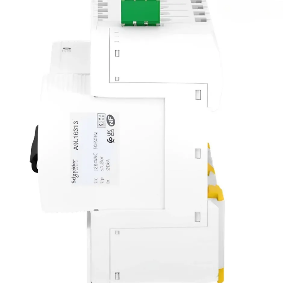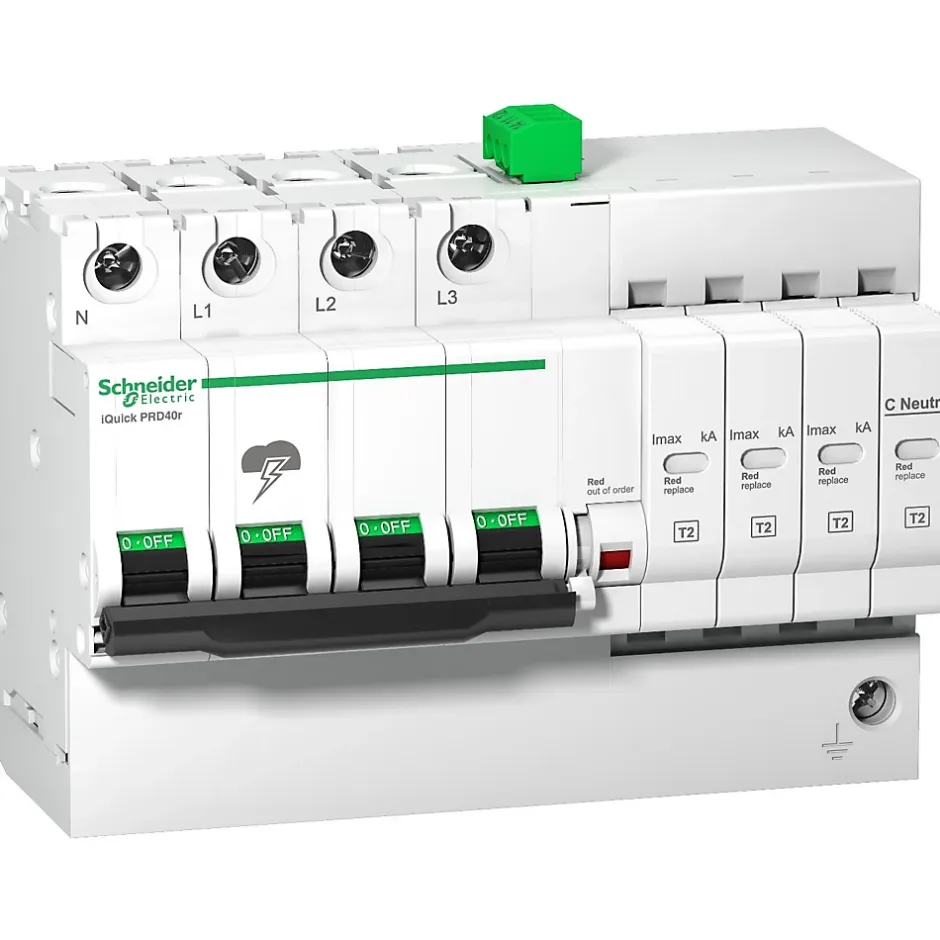 Parafoudre triphasé + neutre Schneider A9L16294Ce parafoudre 3P+N de type 2 est installé en tête de tableau électrique quand l’installation n’inclut pas de paratonnerre. Il est positionné en aval du disjoncteur de branchement.Le parafoudre modulaire Schneider A9L16294 est un parafoudre auto protégé avec disjoncteur intégré. Cette protection assure la sécurité du circuit quand le parafoudre arrive en fin de vie (obligatoire selon NF C 15-100)Ce dispositif de protection contre la foudre inclut un indicateur d’état de fin de vie en façade du parafoudre, caractérisé par un voyant mécanique en rouge quand le parafoudre est à remplacer. Le report de signalisation est assuré par des contacts NO et NF.Ce parafoudre dispose d’un courant nominal de décharge de 20kA. Il dispose également d’un courant max de décharge de 40kA, Cette valeur correspond à l’intensité max que peut écouler un parafoudre sur un choc de foudre.Ce dispositif est connecté au circuit par un système de connexion à vis.L’essentiel sur le parafoudre Schneider A9L16294Courant nominal de décharge In = 20kACourant max de décharge Imax= 40kAType 2parafoudre auto protégé : OuiReport de signalisation : OuiParafoudre débrochable (cartouches remplaçables)
