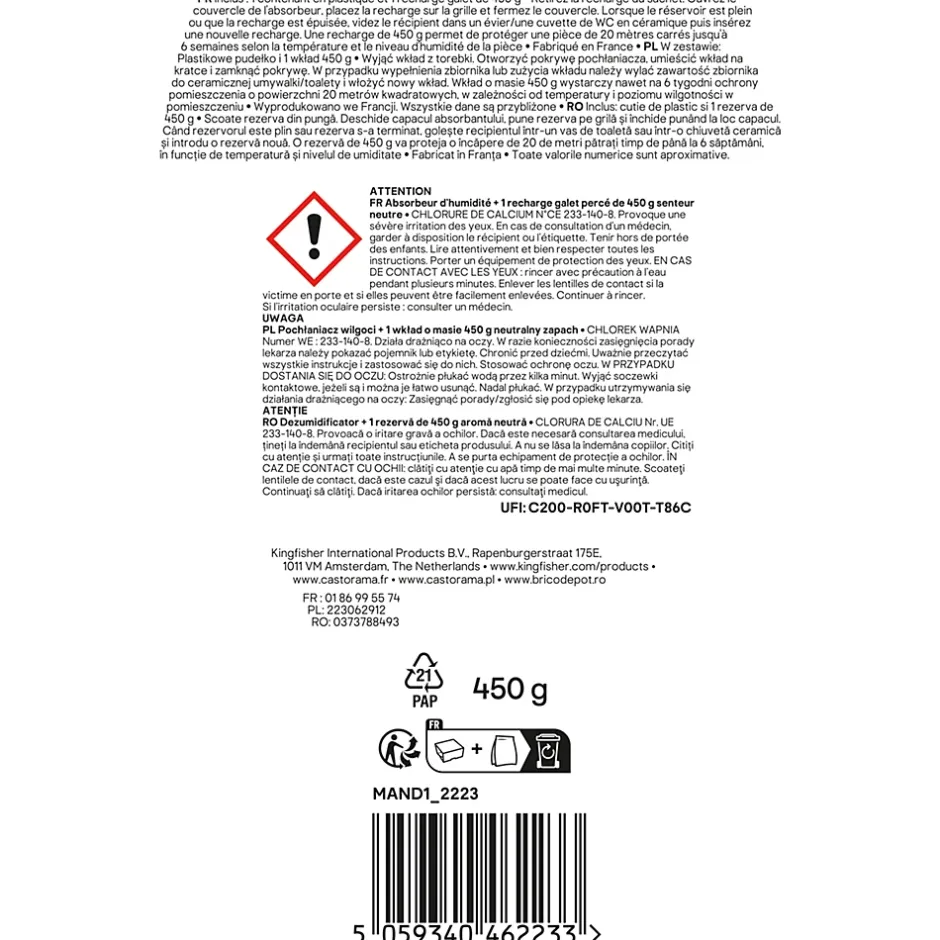 Absorbeur d’humidité GoodHome 20m² + 1 recharge galet 450g