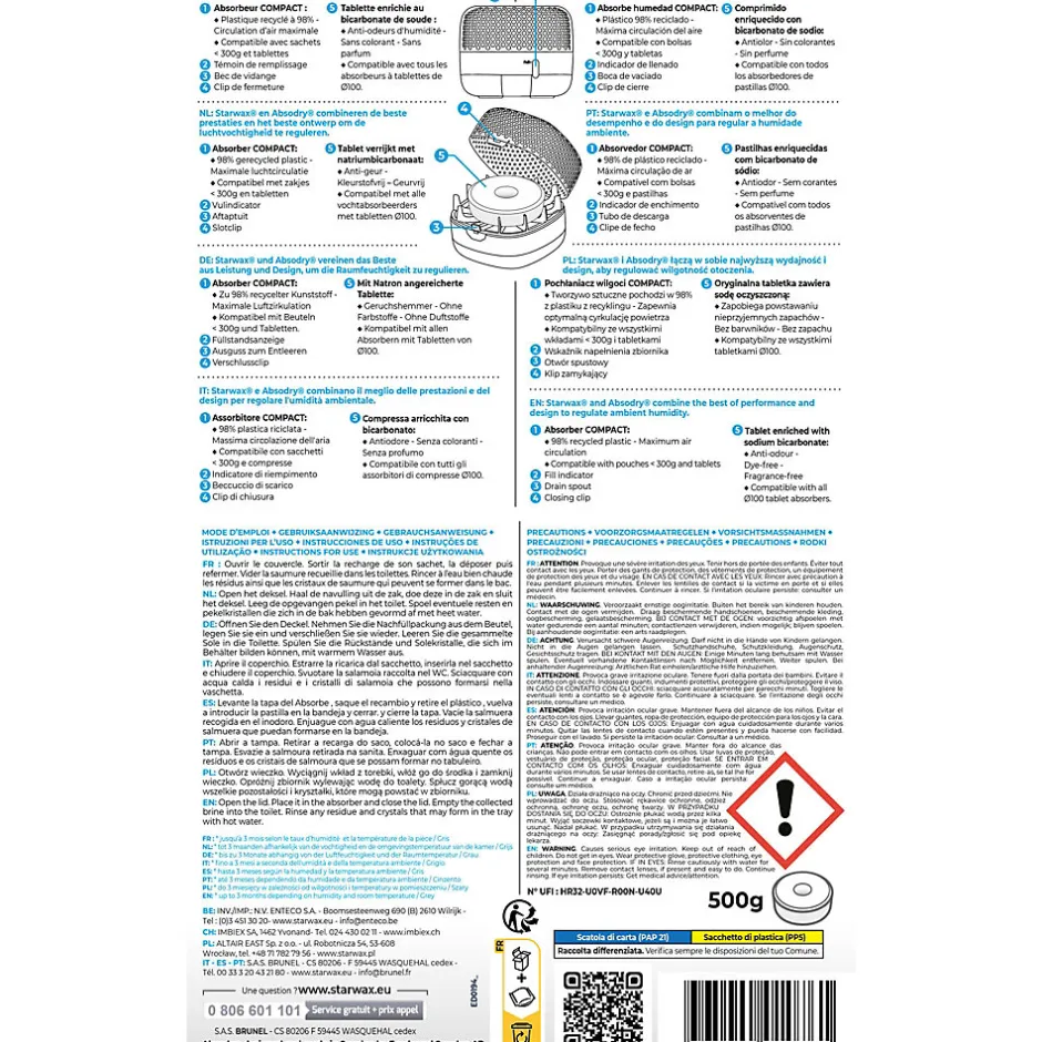 Absorbeur d’humidité compact 15m² gris + 1 tablette 500g Starwax