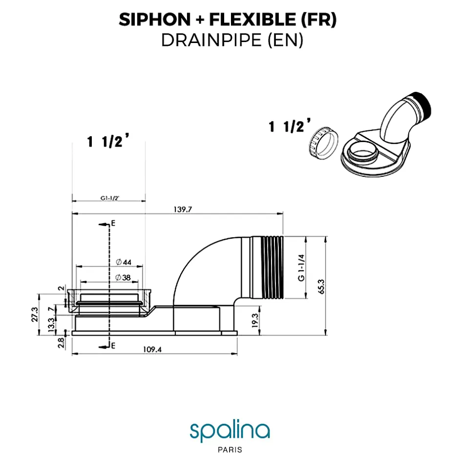 - Decouvrez notre SIPHON EXTRA PLAT+FLEXIBLE – Compatible avec toutes les baignoires îlot SPALINA