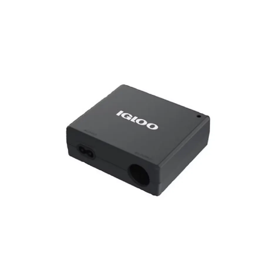 Caractéristiques produitConvertit le courant secteur 230V en sortie 12V type allume-cigare pour alimenter les glacières 12VCâble secteur 230V détachable fourni (Europlug Type C) pour une connexion simpleBoîtier compact en plastique mat noir avec logo IGLOO et pieds en caoutchouc antidérapantsPratique pour une utilisation intérieure ou lors de déplacements sans prise 12VRecommande lutilisation des accessoires dorigine pour des performances optimalesUtilisationPermet dalimenter une glacière 12V depuis une prise secteur 230V : branchez le câble secteur fourni sur lentrée IEC du boîtier puis connectez la fiche 12V de la glacière à la prise allume-cigare femelle.ConnectiqueEntrée : prise femelle de type IEC 2 broches pour le câble secteur détachable.Sortie : prise 12V allume-cigare femelle compatible avec les fiches cylindriques standard des glacières 12V.Caractéristiques physiquesBoîtier rectangulaire compact en plastique mat, bords légèrement arrondis, logo IGLOO centré sur la face supérieure, petite empreinte maniable et pieds en caoutchouc visibles sous lunité.Contenu du packAdaptateur secteur 230V vers 12V et câble secteur détachable Europlug (Type C).