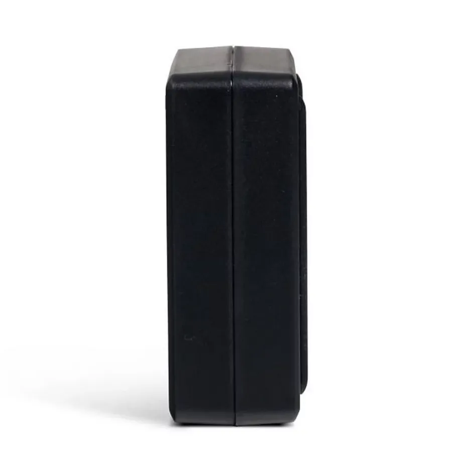 - Boîtier en plastique mat avec bords légèrement arrondis et petits pieds en caoutchouc pour stabilité.