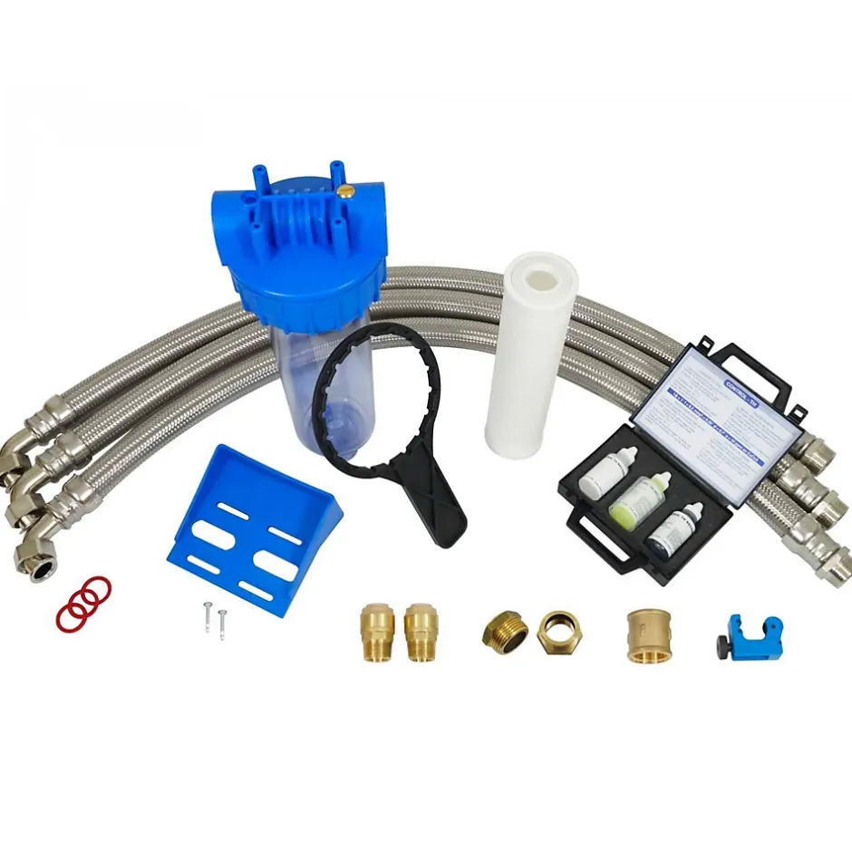 La vanne Fleck 5600 SXT fabriquée par PENTAIR, leader mondial, est d’une grande fiabilité de par sa robustesse et sa simplicité. La régénération est lancée lorsque le volume d’eau est consommé. En fonction de l’application, du volume de résine et de la dureté brute, la régénération doit être calculée pour se lancer avant que les résines ne soient saturées en calcaire. Notre résine bénéficie de l’attestation de conformité sanitaire ACS vous permettra de consommer l’eau sans matériel supplémentaire de traitement. Le grand pouvoir d’échange de cette résine permet une consommation de sel réduite et une durée de vie allongée. Pour un appareil correctement dimensionné et correctement entretenu, la durée de vie est estimée à 15 ans.Notre kit de montage inclus vous permettra de réaliser rapidement et facilement l’installation de votre adoucisseur, tout en bénéficiant d’une pré-filtration efficace. Ce kit comprend : 1 filtre de protection complet 9″3/4 avec cartouche microfibre 20 µm, mamelons en laiton, équerre de fixation et clé de démontage ; 1 trousse d’analyse TH ; 1 mini coupe-tube ; 2 raccords rapides de diamètre 18 mm ainsi que 3 flexibles en inox. .