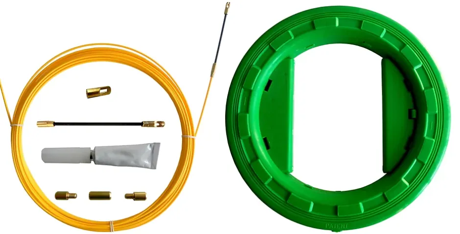 Aiguille tire-fils en fibre de verre SNAKE Ø 3 mm, 30 mètres. Avec tete de guidage flexible et oeillet démontables (M4). Fournie avec kit de réparation et carter de rangement. L’aiguille tire-fils est un long câble en fibre flexible avec une extrémité dotée d’un œillet de tirage et d’une tête de guidage flexible. Elle sert à enfiler les câbles électriques dans les gaines. Ne pas utiliser dans les conduits avec des câbles en tension. La fibre de verre gainée de nylon associe rigidité et flexibilité. Sa flexibilité lui permet de se jouer de chaque coude. Sa rigidité en poussée lui permet d’aiguiller sur les plus grandes longueurs. Le fourreau en Nylon garantit une friction minimale. Avantages : grande capacité d’introduction, auto énergétique. De nombreux accessoires (comme tourets ou carters de rangement) ou accessoires (chaussettes de tirage, mousqutons, embouts, joints etc.) sont disponibles. Matière plastique allemande, fabrication italienne.