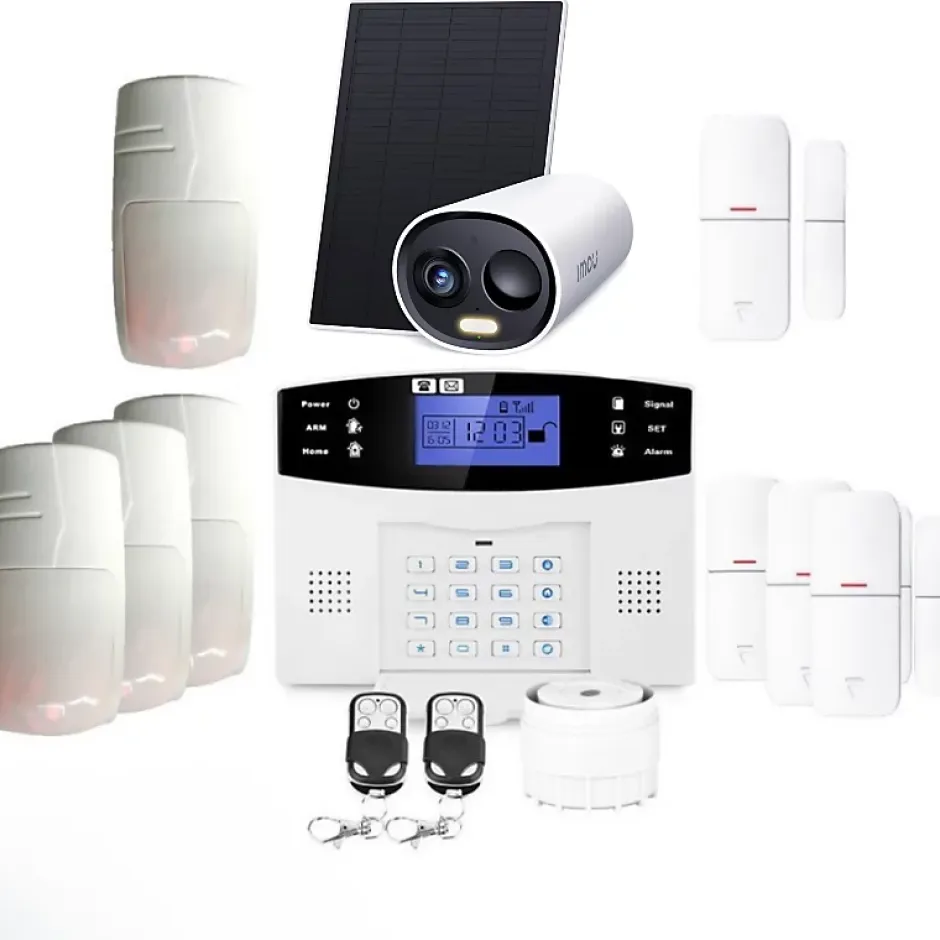 KIT alarme GSM Connecté avec caméra Evolution compatible animaux pour grande maisonVotre maison ou votre appartement est le lieu où vous désirez être en sécurité, mais certains dispositifs de sécurité et services avec abonnement peuvent coûter cher.Grâce à notre nouvelle alarme GSM Evolution, vous pourrez sécuriser votre domicile facilement et sans avoir d’abonnement d’alarme. Vous pouvez armer / désarmer le système d’alarme par téléphone, SMS, télécommande ou par le bouton de la centrale. Si vous voyagez, partez en vacances ou voulez seulement vous assurer que votre maison est sécurisée pendant que vous êtes absent, ce système est idéal pour vous. Les détecteurs animaux ne prendront pas en compte les déplacements de vos animaux domestiques. Ce pack d’alarme comprends:1 centrale alarme GSM 99 zones avec affichage rétroéclairé à LED1 transmetteur GSM intégré1 sirène intérieure de 110dB reliée à la centrale4 détecteurs infrarouge avec immunité animale -10kg4 détecteurs d’ouverture2 télécommandes 4 boutons3 autocollants lieu sécurisé à poser sur vos vitres et sur la boîte aux lettres1 transformateur de 220 Volts1 Caméra connectée sans fil étanche avec panneau solaire1 manuel d’utilisation en français1 ensemble vis et chevilles de fixationToutes les piles et batterie de secoursUne alarme sans fil pour sécuriser votre habitationCe kit est un kit d’alarme sans fil, c’est à dire que la centrale est raccordé à une prise électrique pour alimenter sa batterie, les détecteurs, la caméra sont sans fil, alimentés par des batteries internes.La batterie de la centrale alimentera la centrale en cas de coupure de courant d’e