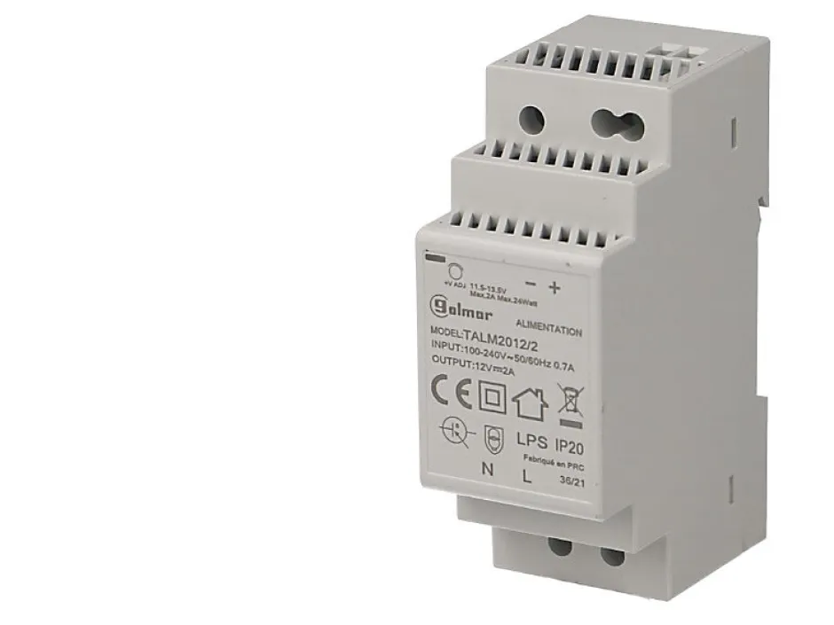 Alimentation électronique 220V alternatif / 12V continu Puissance 24VALe 12V transformateur modulaire Golmar est montable sur rail din, 2 modules