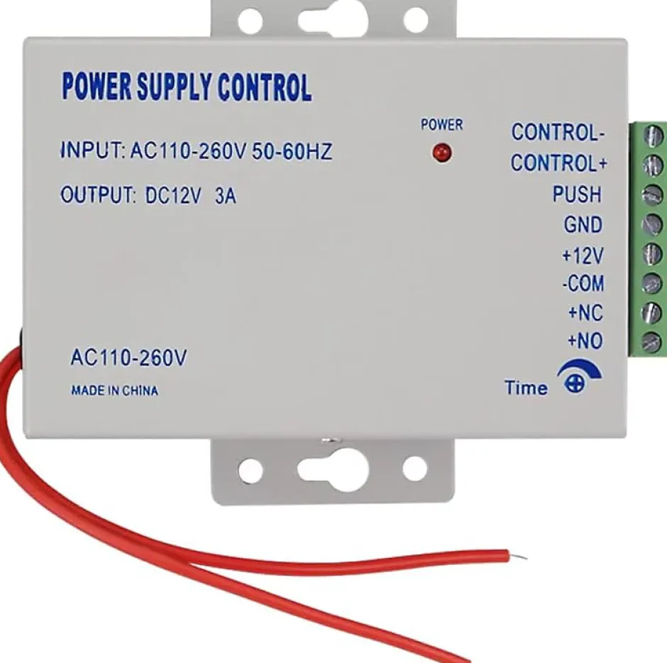 Caractéristiques technique de l’alimentation temporisé 12VDC:Il s’agit d’une alimentation temporisée pour le contrôle d’accès 12VCC, avec intensité max 3A . Peut fournir une sortie très stable et fiable en 12VDC pour divers utilisations, telles que serrure électrique, visiophone, ventouse magnétique…Application:Cette alimentation temporisée en 12VDC est largement utilisée dans le système de contrôle d’accès et les applications connexes telles que la serrure électrique, le contrôleur de serrure, le lecteur de carte de RFID, le clavier à codes …Spécifications:Modèle: K80 3ADimensions: aprox. 10.5 x6.8 x 3.4 cm cm (L x W x H)Tension d’entrée: AC 110 ~ 260 V / 50 ~ 60HzTension de sortie: DC 12 V / 3ASorties NC ou NO, pour contrôler différents t’ell que des serrures électriques, ventouses magnétique…Température d’utilisation : -20°C à +65°C• Protection par coupure automatique de l’alimentation en cas de court circuitLe temps d’ouverture peut être réglé à 1 à 15 seconde après l’ordre d’ouverture à max .Vous permettra également de connecter un bouton poussoir de commande extérieur pour donner aussi un ordre de commande supplémentaire si besoin