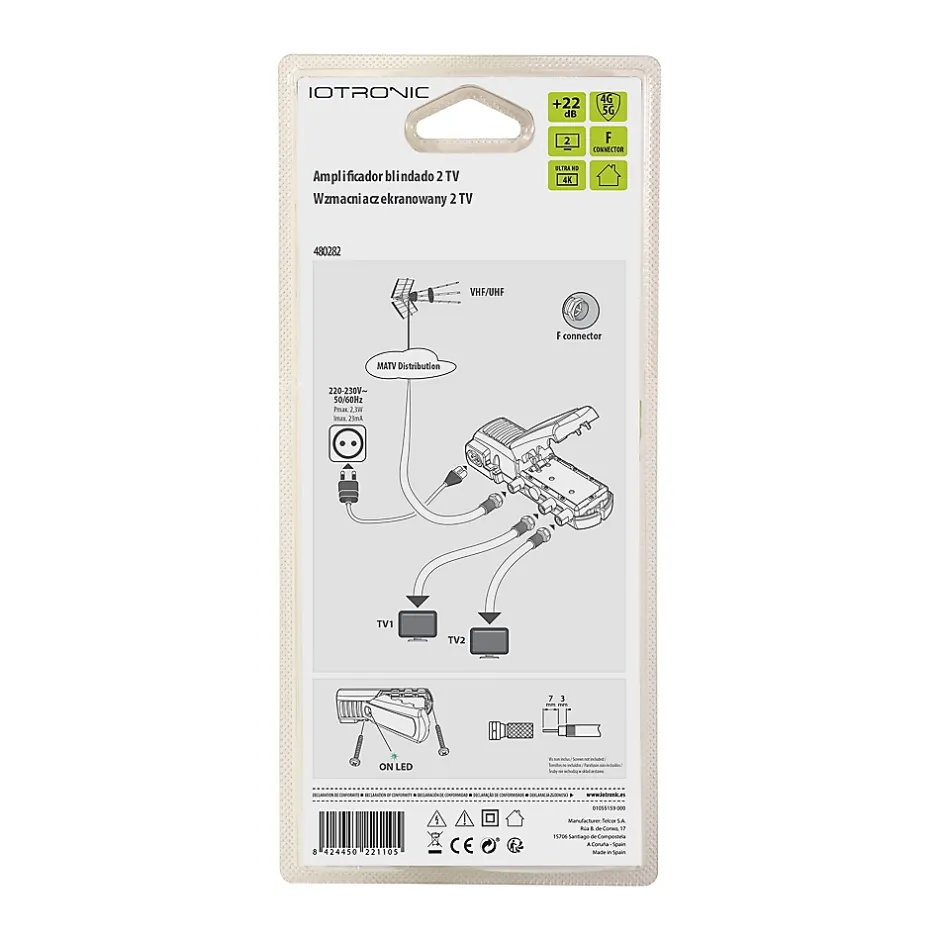 Amplificateur TV 22dB 2 TV 4G/5G, connexion F