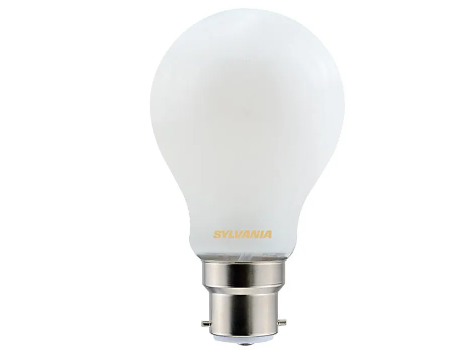 Ampoule LED SYLVANIA ToLEDo Retro A60 E27 4,5W (470 lm) aspect satiné, 2700 K (blanc chaud), remplacement efficace des ampoules incandescentes jusqu100 W, angle 300pour une lumière homogène; durée de vie 15 000 h; non dimmable; pas recommandée pour luminaires fermés.