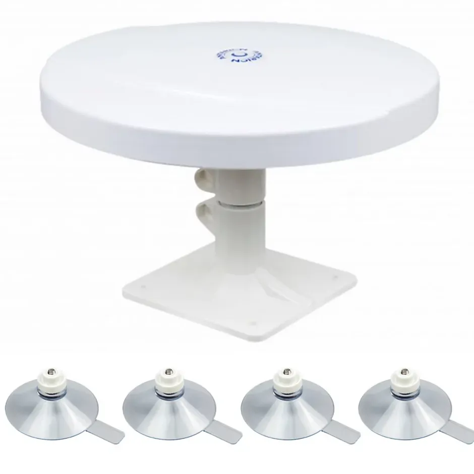 • Autoalimentée par n’importe quelle télévision via la connexion à la prise d’antenne de la TV• Filtre 4 G – Gain : 38 dB• Aucun composant électrique (élimine les risques de panne)• Bande de fréquence : 470 – 790 MHZ• Antenne TNT passive omnidirectionnelle• Peut se fixer sur un mât• Dimensions : 28 x 28 x 18 cm• Poids : 0,9 kg Jeu de 4 ventouses pour montage amovible des antennes omnidirectionnelles.Dimensions : 2 x 2 x 2 cm Poids : 0,2 kg