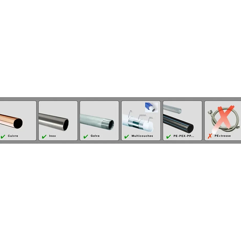 Anti-incrustation calcaire électronique D-CALC, sans entretien ! Le D-CALC produit des impulsions OEM (ondes électromagnétiques) qui sont transmises à l’eau à travers la tuyauterie, par l’intermédiaire des câbles enroulés autour de la conduite. Les appareils peuvent être placés sur tous les types de conduites : galvanisé, cuivre, PVC, etc. L’origine des incrustations calcaires : lorsqu’une eau dure est chauffée, le gaz carbonique se libère, le carbonate de calcium se cristallise et forme les incrustations calcaires dures. Facilité de montage : Le D-CALC sera installé sur l’arrivée principale d’eau froide de votre habitation. Le montage du D-CALC est extrêmement simple : il ne vous demandera aucune connaissance technique particulière et ne vous prendra que quelques minutes. Caractéristiques techniques : Capacité de traitement: pour la maison unifamiliale. Fixation sur le tuyau au moyen de deux colliers de serrage. Encombrement sur la canalisation env. 30 à 40 cm. Alimentation: 220 V/50 Hz -0,75 W/h, câble d’alimentation env.1,8m avec fiche Euro. Boîtier en ABS. 1 interrupteur à membrane pour mise en automatique. 1 Led de contrôle: position automatique. 3 Leds de contrôle indiquant l’absorption momentanée du signal. Câbles d’induction standards 2 x 2,5 m enfichables. Dimensions hors tout: H X L X P 160x100x55(45) mm